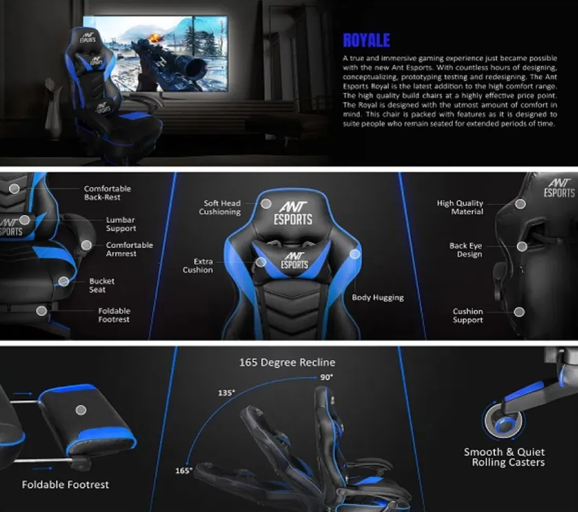 Ant Esports Royale Gaming Chair- Black/Blue